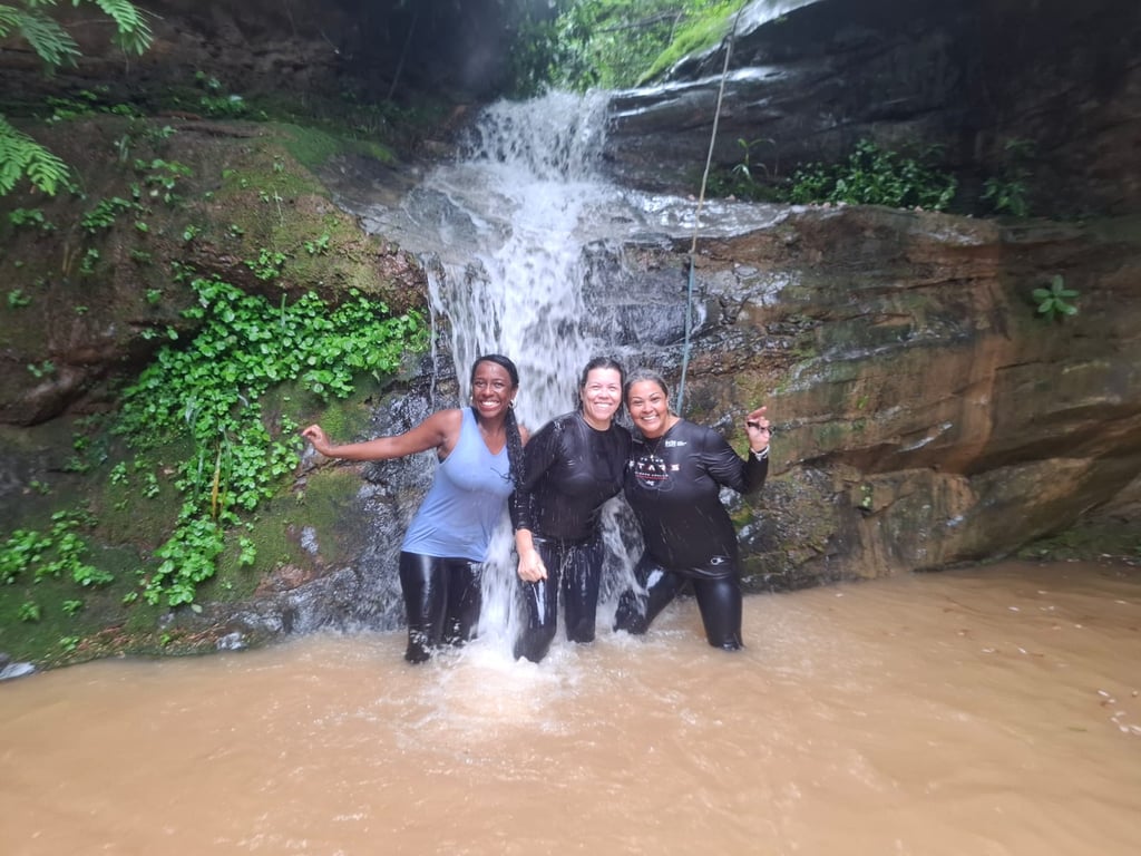 caminho, os participantes exploram uma caverna de grande beleza natural e