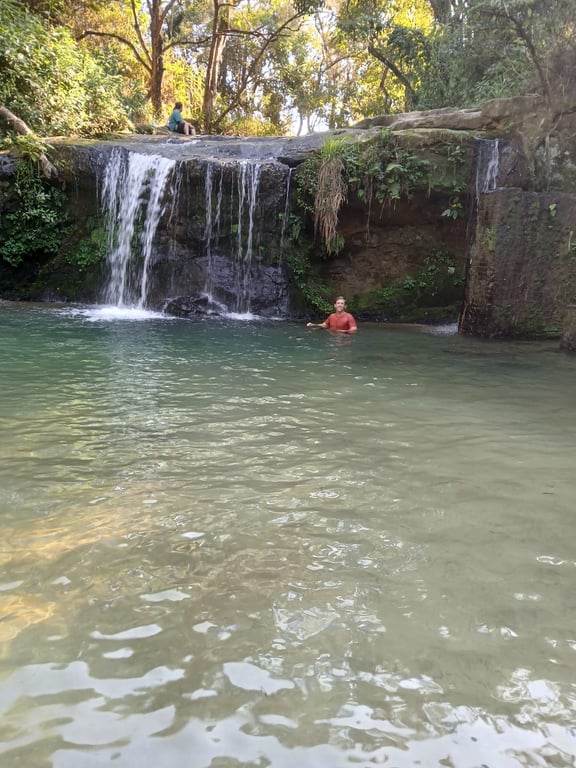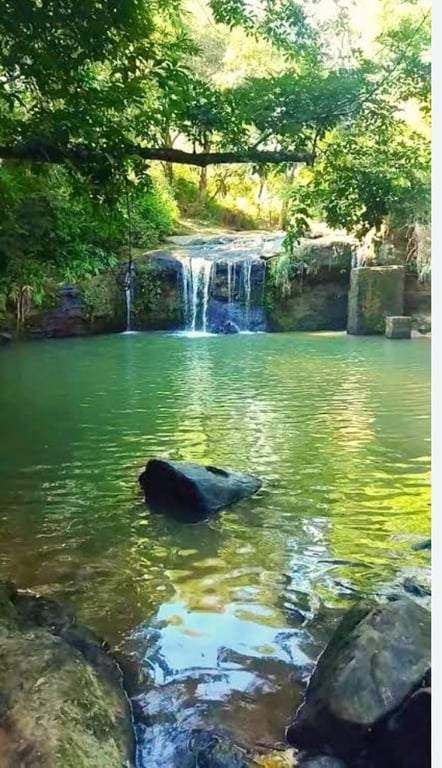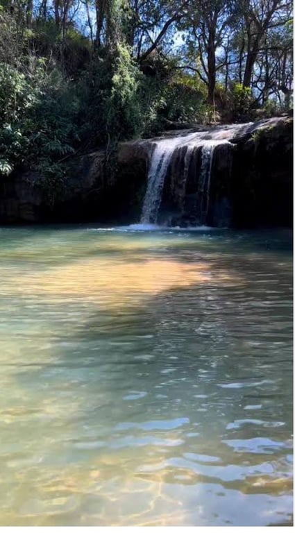 A queda d’água forma uma piscina natural perfeita para aquele mergulho refrescante, enquanto o som das águas e o canto dos pássaros criam o cenário ideal para relaxar e se reconectar.
