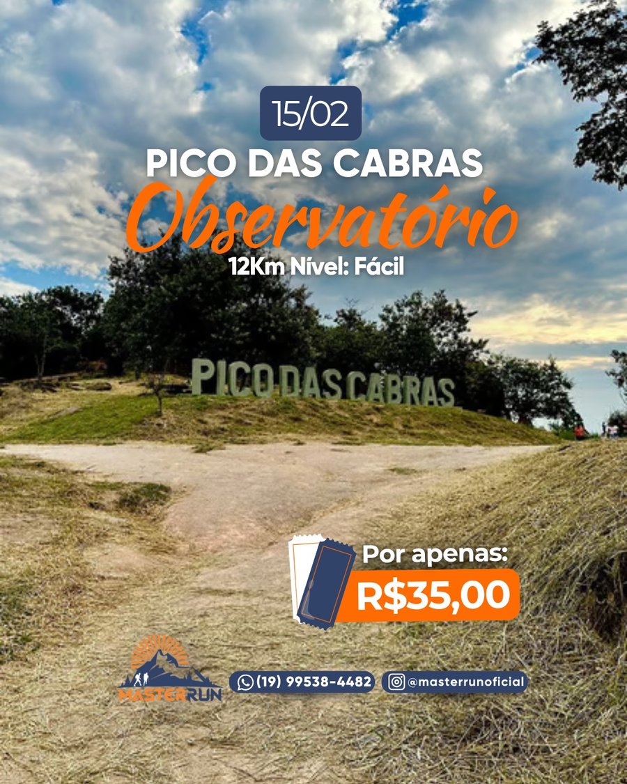 🌄 No dia 15 de fevereiro, venha viver essa aventura! Uma caminhada em Joaquim Egídio, com passagem pelo Observatório Municipal de Campinas e pelo Pico das Cabras, em um percurso circular desafiador, cercado por paisagens incríveis. 🚶♀️⛰️
