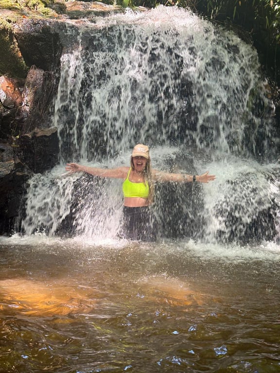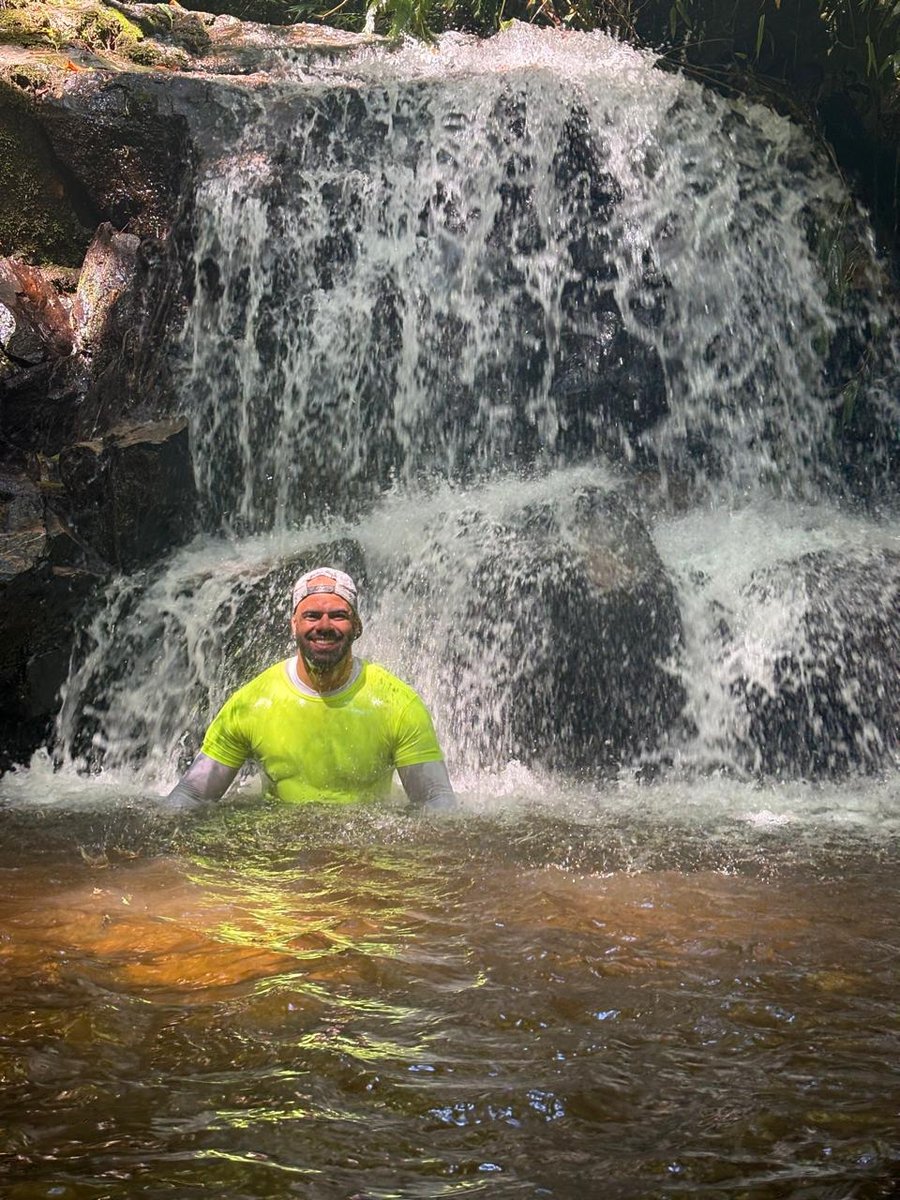 O ponto alto da trilha é uma pequena cachoeira escondida no coração da Serra, um convite irresistível para se refrescar, sentir a energia da água e se reconectar com a natureza. 💦