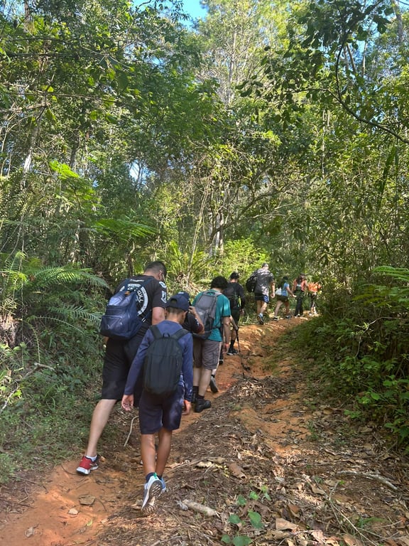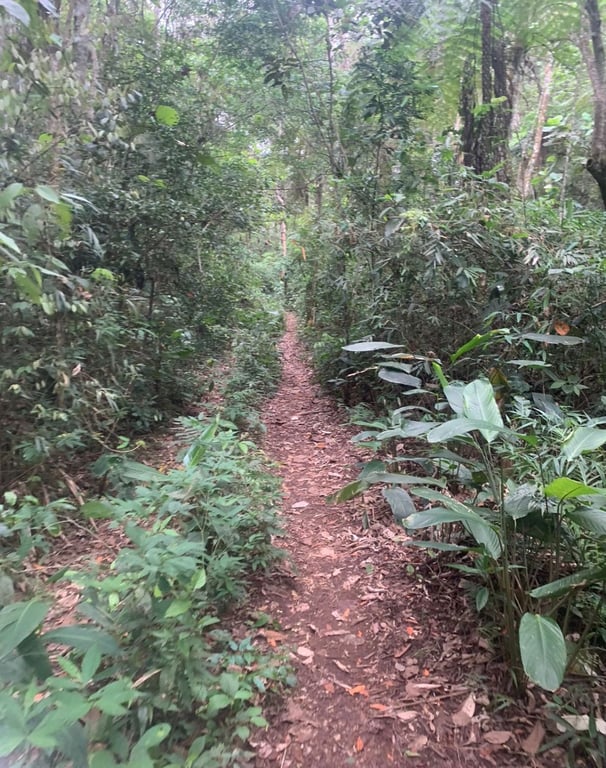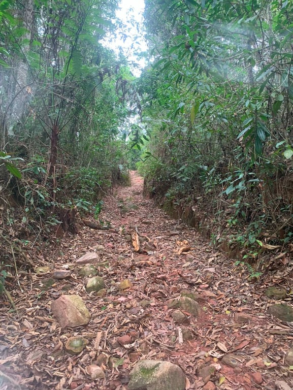 Prepare-se para uma trilha de 8 km em meio à mata fechada, onde cada passo renova a mente e desperta os sentidos. O percurso apresenta subidas e descidas que desafiam o corpo, mas oferecem o equilíbrio perfeito entre esforço e contemplação.